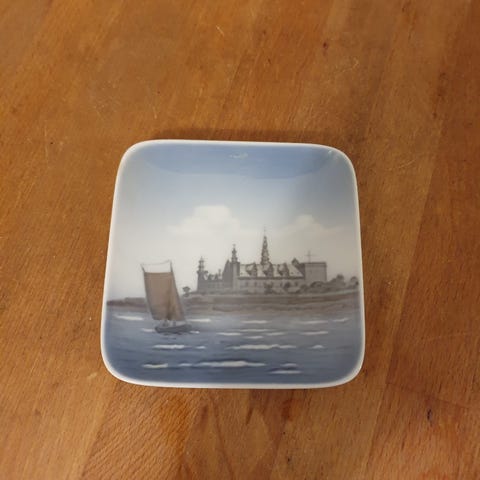 Kendt fra Sommerdahl. Royal Copenhagen, Kronværksporten, Kronborg. Kronborg er med i Serie Sommerdahl. Produceret som Askebæger nr. 3673 men er fint til opbevaring/pynt. Mål 12x12 cm. 1. sortering uden skår. Nyt og ubrugt. Fra røgfrit og dyrefrit hjem.