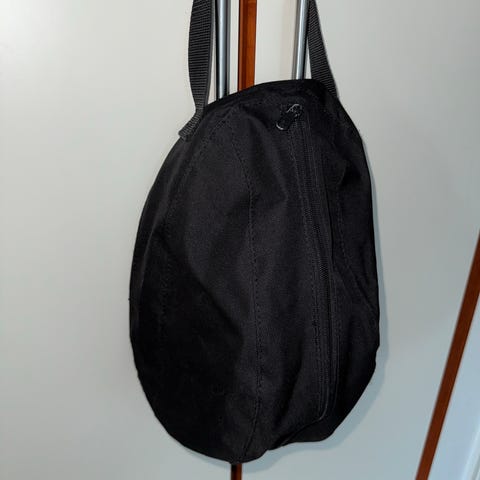 Taske til ride hjelm olivengrøn farve med sort håndtag. Tasken har en praktisk størrelse og er velegnet til opbevaring og transport af forskellige genstande.