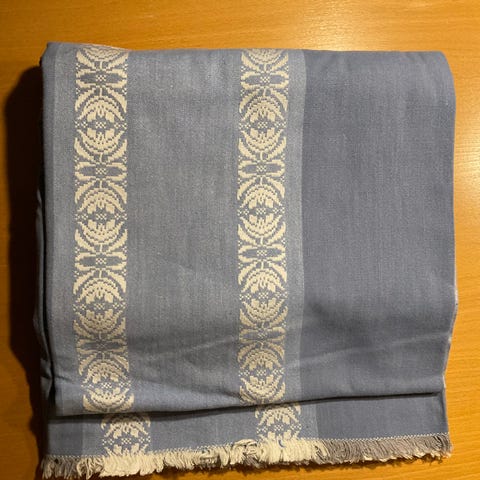 Dug, 1 dug blå/lys str. 1,25 x 2,10 sælges for 120 kr