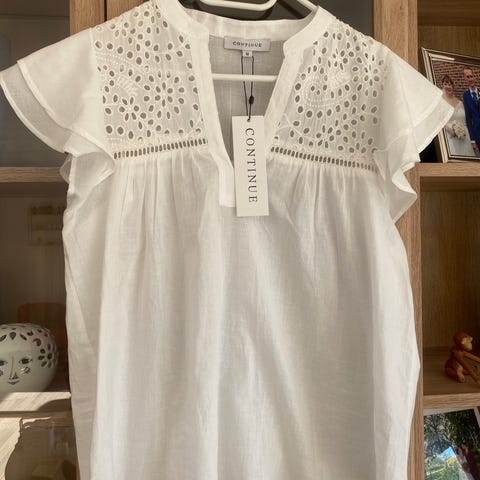 Flot hvid skjortebluse med indsnit i taljen og bindebånd i ryggen