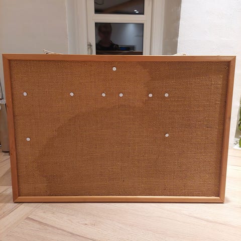 Retro opslagstavle med hessian og træramme. Her med sort hessian og sortmalet ramme.
