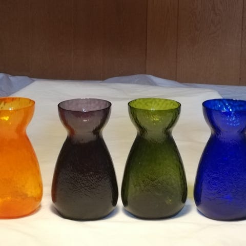 Runde hamret hyacintglas fra Kastrup/Fyens Glasværk. De er fine og velholdte uden skår og revner eller glaspest
