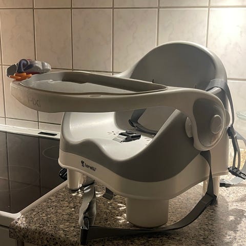 Tommee Tippee højstol til børn. Designet til at give støtte og komfort under måltider. Kan bruges i forskellige positioner for at tilpasse barnets behov.