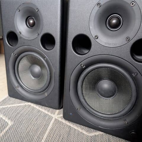 Sælger mine gamle Argon 7460A aktive højttalere (kræver ej forstærker), som stadig spiller fantastisk og højt (2x65 watt). Perfekt til PC-opsætning eller som budgetvenligt anlæg.