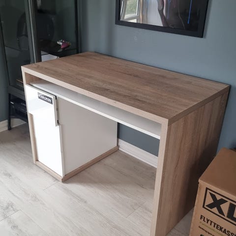 Øverste skuffe lukker ikke til men er ikke forsøgt lavet! Ellers fint solidt bord og stabilt!