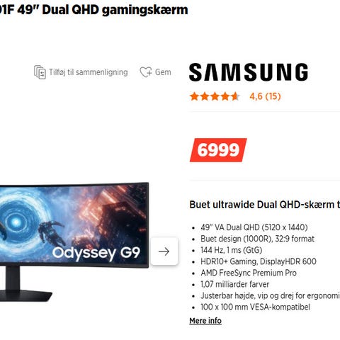 Jeg sælger min fantastiske Samsung Odyssey G9, på 49" og 240Hz med curved skærm.