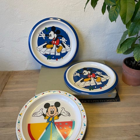 2 stk. Vintage melamin tallerkner med Disneys Aladdin. Genin Trudeau