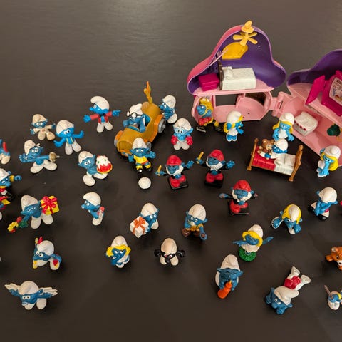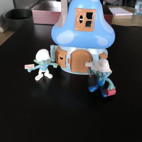 Brugt, men fint smølfehus/-park (Central Park) med vippe, karussel, vandfald, smølfehus og højhus som kan klappes sammen og bæres i håndtag. Ingen reelle skader, kun få kosmetiske ridser på ydersiden. Der mangler et højhus, der følger 2 smølfer med.