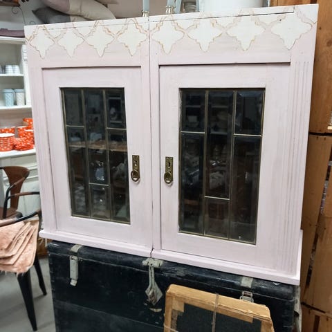 Min mintgrønne smukke vitrine sælges. Lågerne fungerer som de skal og den er malet af tidligere ejer fra en retrobutik.