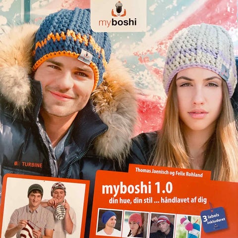 Myboshi 1.0 er den første bog med disse særlige opskrifter. Bogen indeholder opskrifter til nybegynderen og inspiration til den øvede hækler. Bogen indeholder flotte, farverige billeder, så det er nemt at blive inspireret. Derudover indeholder bogen tips om hækling og hæklemetoder, så du hurtigt kan komme i gang med at lave din egen hue.