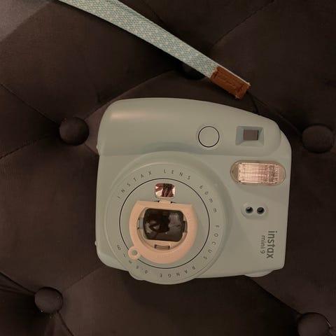 Instax Mini 11 instantkamera i lyserød farve. Kameraet har en indbygget blitz og bruger Instax Mini film, som er kompatibel med kameraet. Kameraet har en simpel betjening og er designet til at tage øjeblikkelige billeder, som printes ud direkte efter,