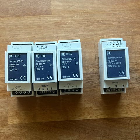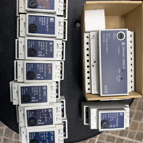 Dimmer 1000LR induktiv dimmer med en spænding på 230V og en effektkapacitet på 100-1000W, 100-1000VA. Enheden har en minimumsniveaujustering fra 0-40% og er designet til brug med induktive belastninger.