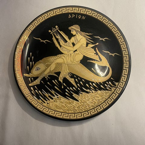 Græsk platte. Vintage grecian græsk keramik platte med satyrer