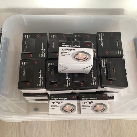 Andet, To downlights - blankpoleret krom - halogen max 20W - H 8,5 x B 13cm. Kun brugt kort tid. Gi' et bud - fx 100 kr/stk eller begge for
