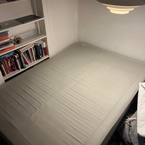 IKEA madras til enkeltseng i hvid farve. Madras med enkel og funktionel design, egnet til brug som soveunderlag på enkeltseng.
