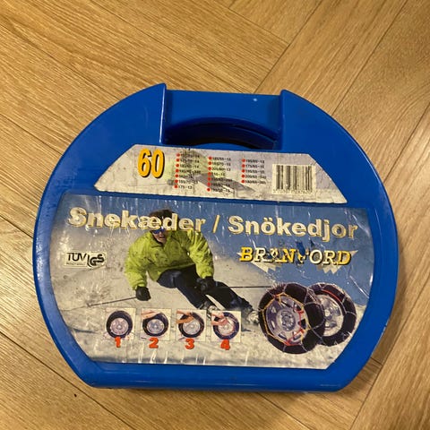 Snekæder (GR. 7). Ubrugte. Se på billedet, hvilke dækstørrelsersnekæderne passer til.