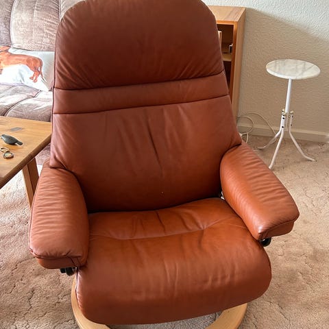 Øverste del kan vippes bagud, sådan man kan ligge helt ned, når stolen vippes tilbage