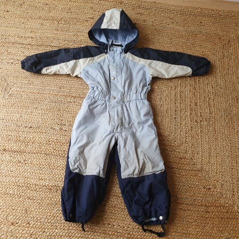 Helly Hansen Recycle flyverdragt/skaldragt til drenge i størrelse 128. Flyverdragten er blå og fremstillet i polyester. Den har forstærkninger på knæ og elastiske manchetter ved benene. Passer til udendørs brug og beskytter mod vejrforhold.