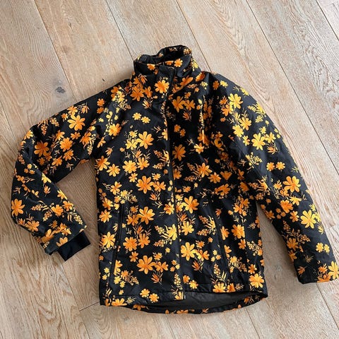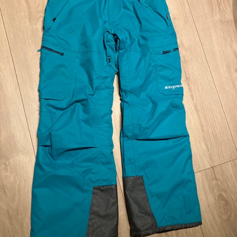 Brugt på tre skiferier. Der er små flænger i stoffet nederst på ene bukseben (se foto). Fejler ellers intet.
