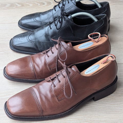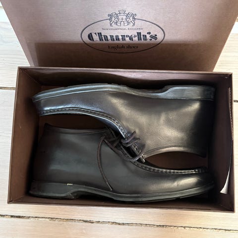Jeg sælger min samling af Church-sko. Det er håndsyede klassiske herresko af høj kvalitet. De har ikke været brugt i mange år og nogle af modellerne er næsten ubrugte. Størrelserne er 6 F eller 6.5 F (ca. 39-40) så det er til dig der har lidt mindre fødder end gennemsnittet. Prisen er for samtlige 9 par men jeg sælger gerne enkelte par hvis det har interesse (kom og prøv og giv et bud). Der medfølger blå filtposer til alle sko.