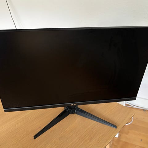 Acer K242HL 24 tommer skærm med sort kabinet. Skærmen har flere tilslutningsmuligheder, herunder HDMI, DisplayPort og DVI. Designet til almindelig brug med fokus på funktionalitet og alsidighed.