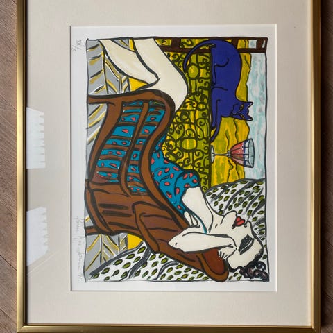 Original litografi af Karen Kjær Laursen købt ved Galerie Moderne.