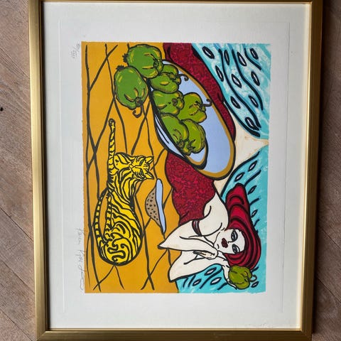 Original litografi af Karen Kjær Laursen købt ved Galerie Moderne.