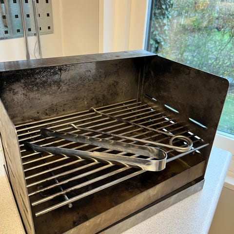 Grillvogn i metal med låg og hjul