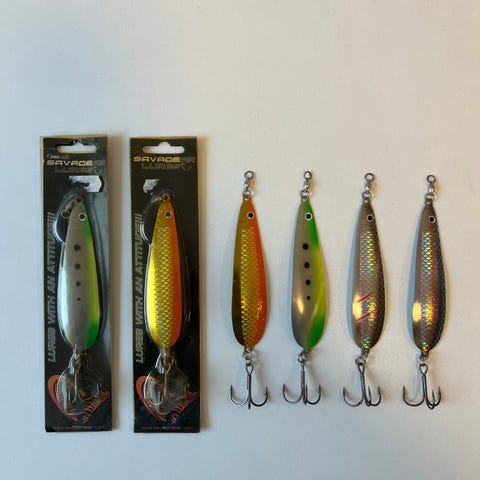 11 trolling spoons fra Danish Lures: Jønson, Nasty Boy, Copy Cat og Hybriden. 3 er lettere brugte - 8 er ubrugte.