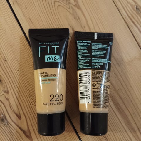 Maybelline New York. Fit Me Matte & Poreless Foundation i farverne 120 og 105. Foundation med mat finish og poreudjævnende effekt. Produktet kommer i tubeform som et uåbnet med ubrudt emballage.