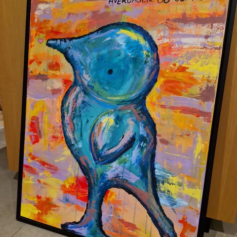 Maleri med sommerfugl motiv i sort ramme