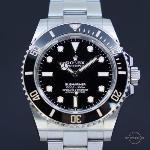 Rolex Submariner 126610LN med bokse og papirer fra 2023. Uret fremstår i rigtig flot stand. Den aktuelle model af submariner i 41 mm med 70 timers gangreserve og en præcision på +- 2 sekunder pr døgn. Der er fabriksgaranti fra rolex indtil 2028