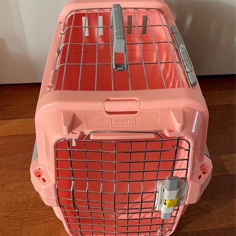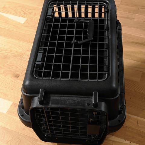 Transportkassen er designet til nem transport af kæledyr og har flere åbninger med net for ventilation og udsyn. Materialet er holdbart og velegnet til rejser og transport.