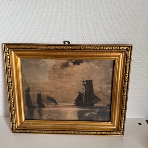 Ukendt Kunstner - Oliemaleri på plade - Fiskerbåd i Måneskin