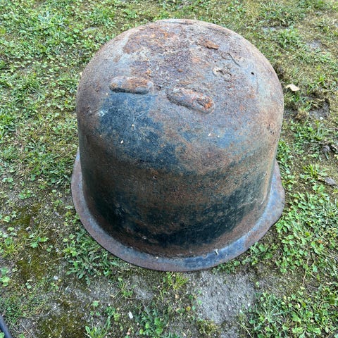 Antik gruekedel m aftræk til skorsten