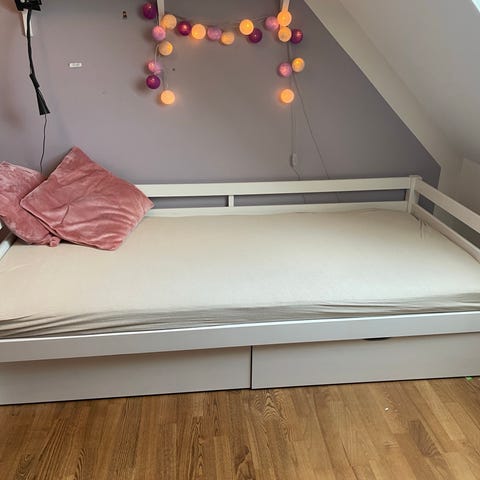 Fin Flexa seng. Hvidpigmenteret træ. Fremstår meget pæn. Fra ikke-ryger hjem.