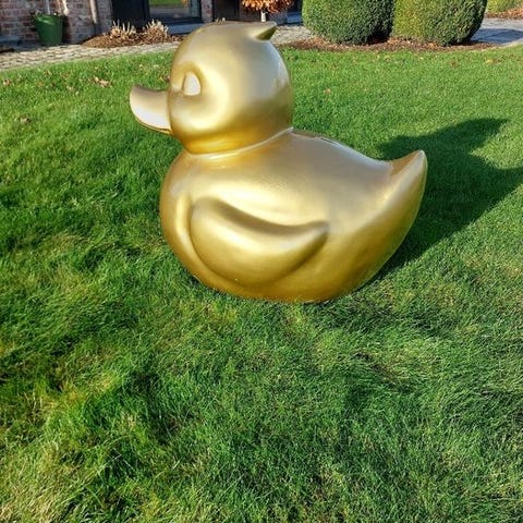 Stor turkis badeandestatue i polyresin, 43 cm høj, 43 cm bred og 44 cm dyb, anslået periode 2020+, produceret i Europa, i ubrugt tilstand. Klik på den blå "gå til varen" knap, for at købe eller byde på denne vare. Den samlede pris vil blive vist inden du afgiver dit bud.