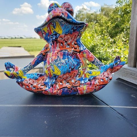 Bronsefrog i en hoppe-frosk skulptur, oprindelse Europa, estimeret periode 2020+, mål 30 cm bred, 20 cm høj, 12 cm dyb, skildrer en frø i en akrobatisk dykkeposisjon, i god stand – brugt med små tegn på aldring og pletter. Klik på den blå "gå til varen" knap, for at købe eller byde på denne vare. Den samlede pris vil blive vist inden du afgiver dit bud.