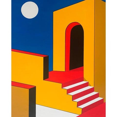 Genkendelig på afstand kan hans arbejde ses som en harmonisk, men kompleks sammensætning af enkle, farverige og dristige former, ofte med et gådefuldt tema og en surrealistisk tilgang.