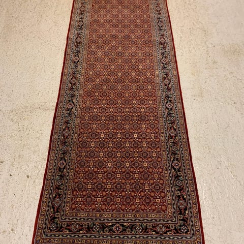 Løberen er fuldstændig håndvævet af høj kvalitet uld. Den fine vævning giver en behagelig fornemmelse i berøring, høj slidstyrke og lang
