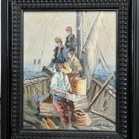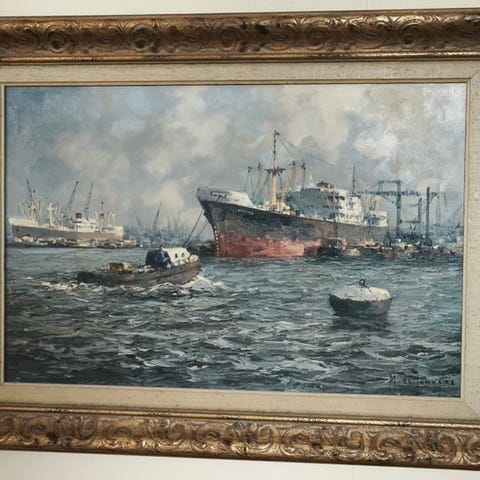 Gheorghe Popescu (1903–1975), rumænsk kunstner, oliemaleri med titlen Gemälde i Meereslandschaft, 43 × 53 cm, vægt 650 g, original udgave, periode 1960–1970, håndsigneret, solgt af ejer eller videresælger, leveret med ramme, i god stand. Klik på den blå "gå til varen" knap, for at købe eller byde på denne vare. Den samlede pris vil blive vist inden du afgiver dit bud.
