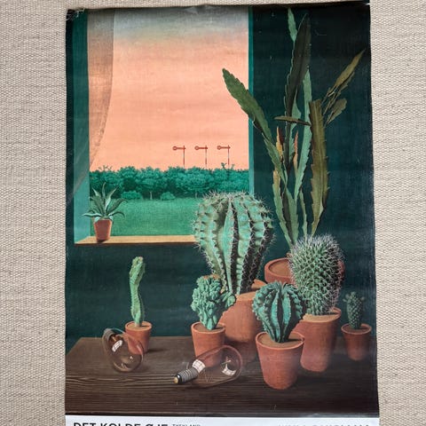 Original plakat / (litografi nummereret 48/99) af Andreas Schulze (° 1955) fra 1987 med stilleben af et vindue / kvistvindue / kælderlem.