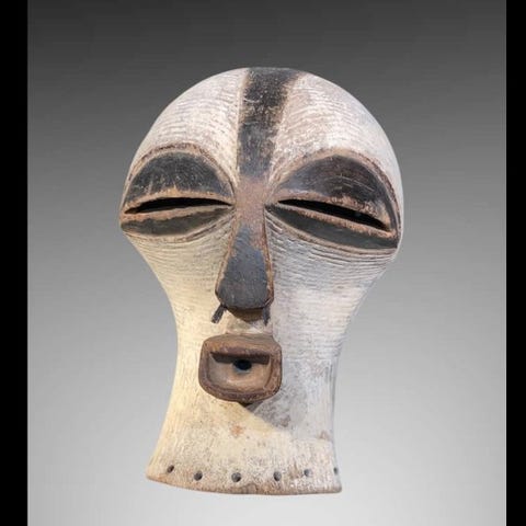 SONGYE‑maskeobjekt, højkvalitets træmaske fra Den Demokratiske Republic of Congo, 37 cm høj, 24 cm bred, 15 cm dyb, vægt 0,5 kg, i fremragende stand, sælges med stand, provenance Privat samling. Klik på den blå "gå til varen" knap, for at købe eller byde på denne vare. Den samlede pris vil blive vist inden du afgiver dit bud.