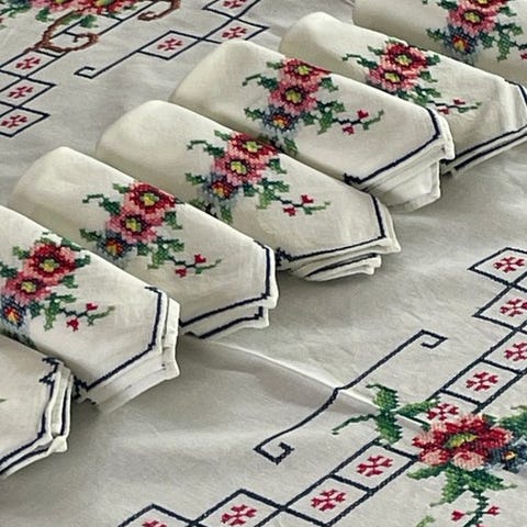 #dug #servietter #linned #blonde #håndbroderet #bordkunst #dekorereteborde #bordstyling #luksussamling #nappedetabel #servietterbroderet #antiktlinned #blondealamain #broderalamain #bordkunst #dekorereteborde #luksussamling #tæppe #broderetserviet