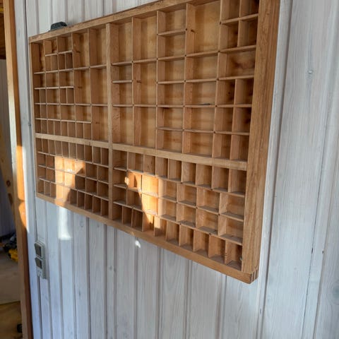 Typografenkast fra Europa, i god stand, brugt med mindre alderstegn og pletter; træ, mål 83 × 53 × 4 cm. Klik på den blå "gå til varen" knap, for at købe eller byde på denne vare. Den samlede pris vil blive vist inden du afgiver dit bud.