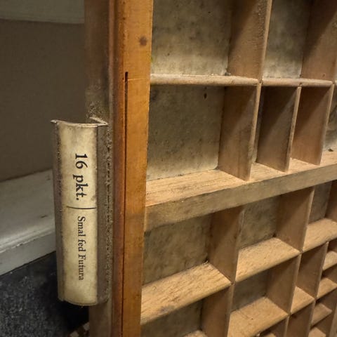 Et bogstavskab, der blev brugt i trykkerier til at ordne blytyper og andre typografiske tegn.