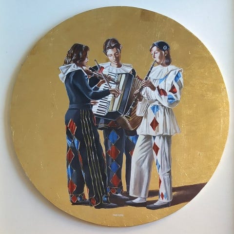 Lombardi, skabt i 1978, forestiller en figurativ komposition med stærk ekspressivitet. Scenen er fyldt med flere personer fanget i bevægelse, sandsynligvis indsat i en populær eller arbejdsmæssig kontekst, hvilket er et gennemgående element i kunstnerens figurative produktion.