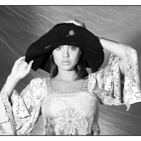 Det modige billedkomposition, bevidst centreret om holdningen og kropsstillingen, skaber en stærk og medrivende visuel spænding. Håndtasken, som holdes forsigtigt, tilføjer et strejf af diskret luksus og fortæller en historie: om en selvsikker kvinde, der træder ind i et univers af prestige og eksklusivitet.