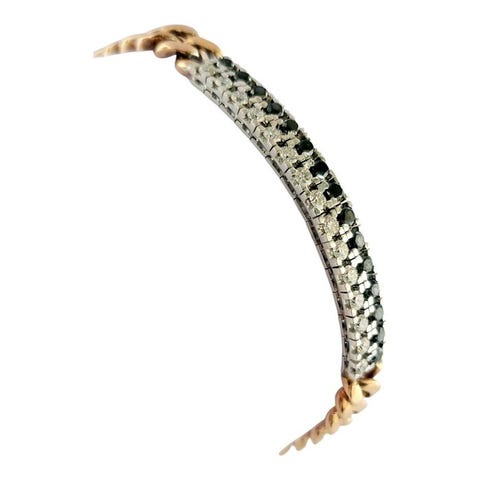 Guldbelagt armbånd i gult og rosa 18 kt, prydet med seksten diamanter, der danner et centralt hjerte. Kompositionen fuldendes af rubin, safir, tormaliner, peridoter, koraller og ferskvandsperler, hvilket skaber en rig blanding af farver og elegance.