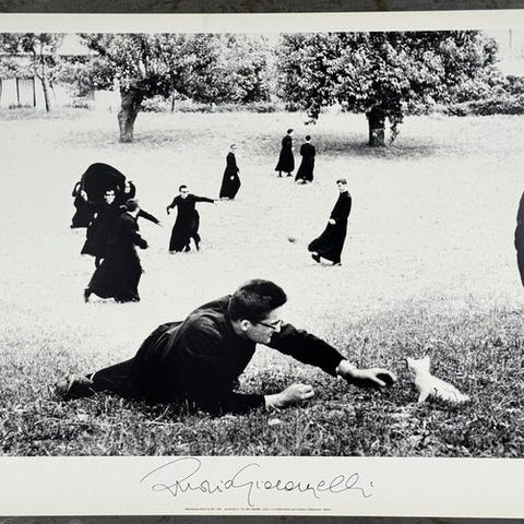 Et særligt og smukt originalt sort-hvidt fotografi af Mario Giacomelli med titlen 'PASSATO Poesia di Vincenzo Cardarelli', tryk fra 70'erne, underskrevet med blyant og med kunstnerens stempel på bagsiden.